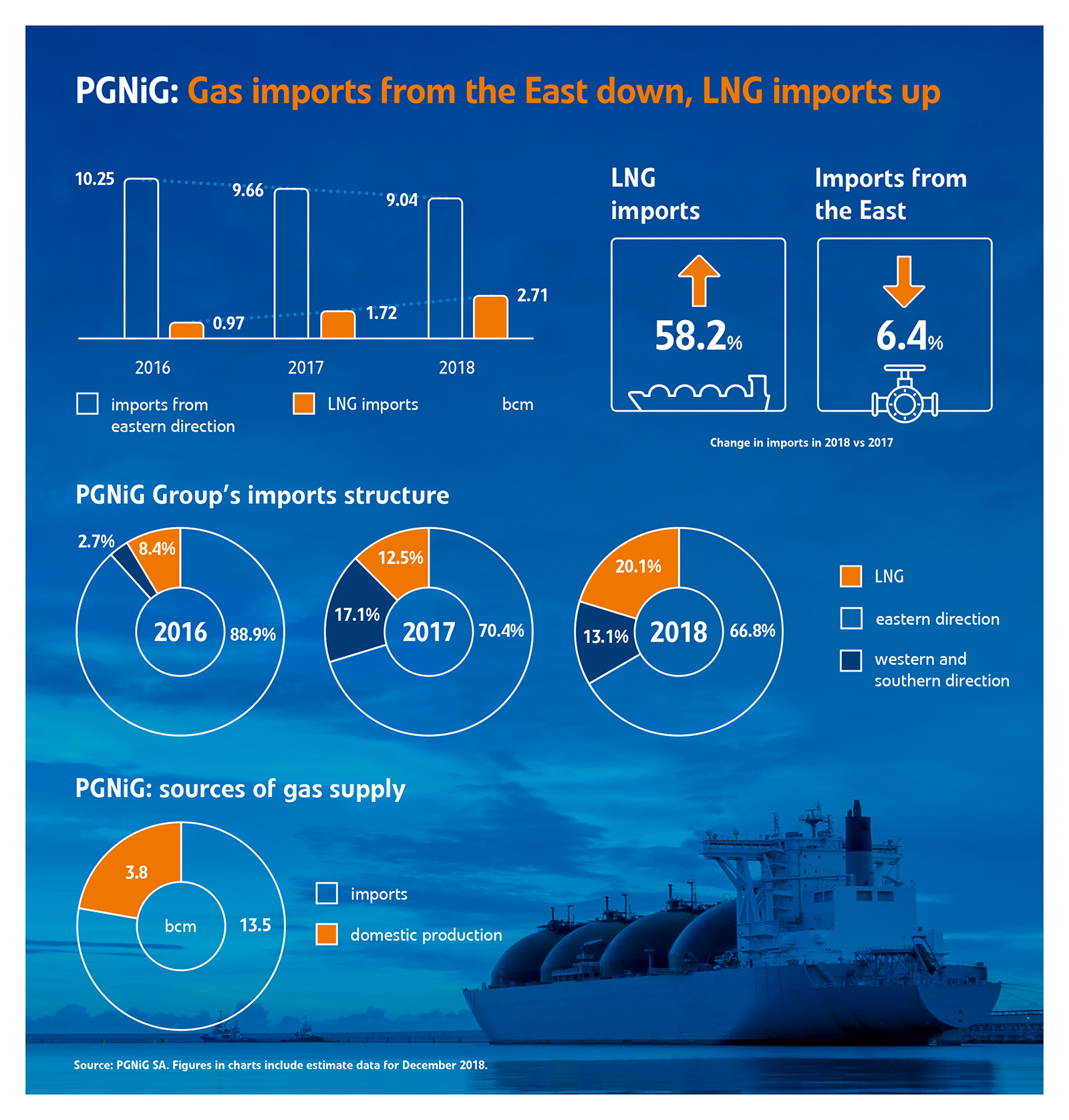 09.01.2019 PGNiG: 2018 – another year of declining gas import volumes from Russia and growing LNG imports